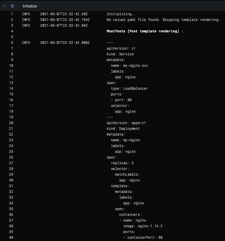 Now that Harness has ensured that manifests can be used, it will process the manifests.