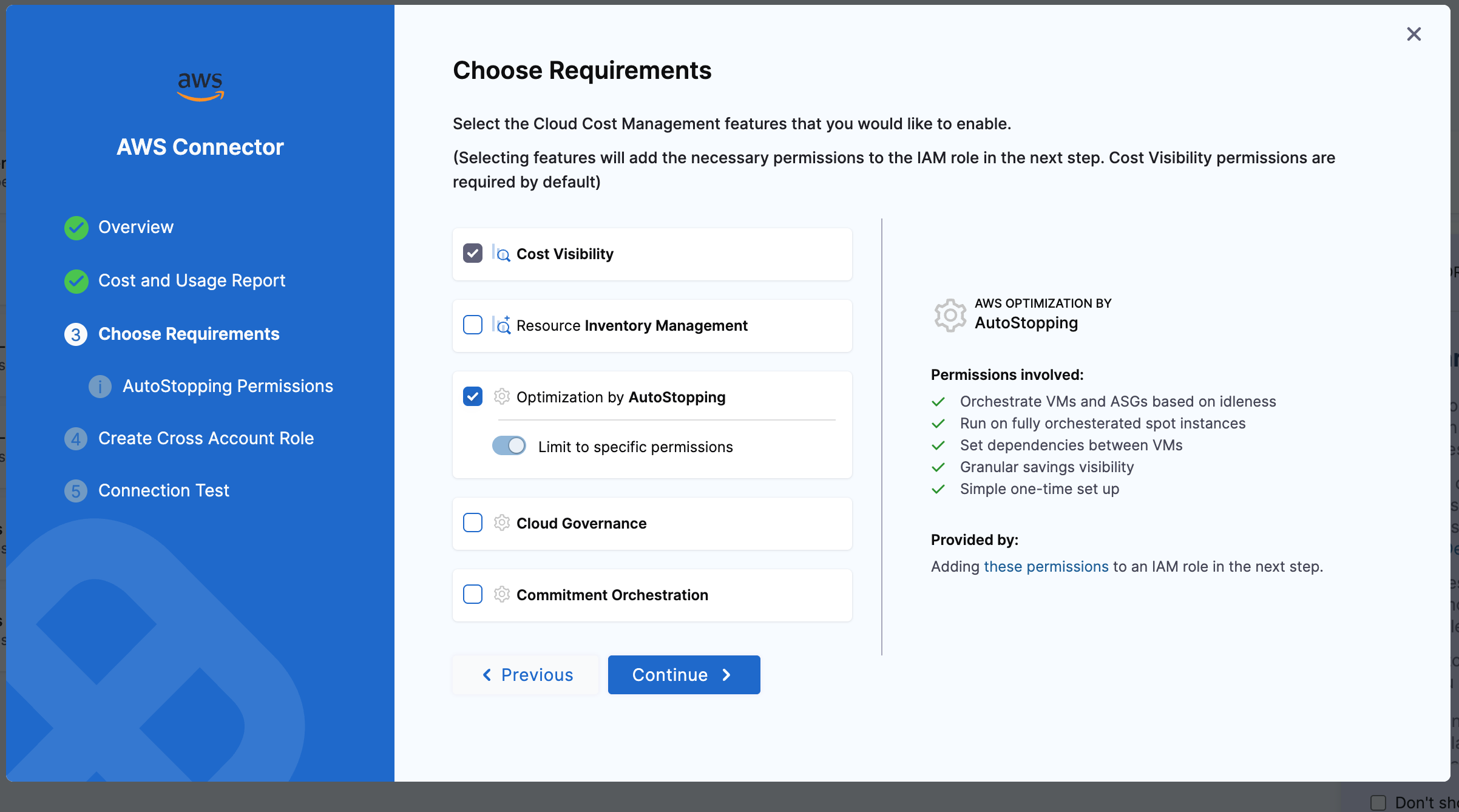 As part of Azure Connector validations for Inventory and AutoStopping, we're now checking whether the service principal has the required roles for these features: Reader role for Inventory and Contributor role for AutoStopping. These checks will run whenever