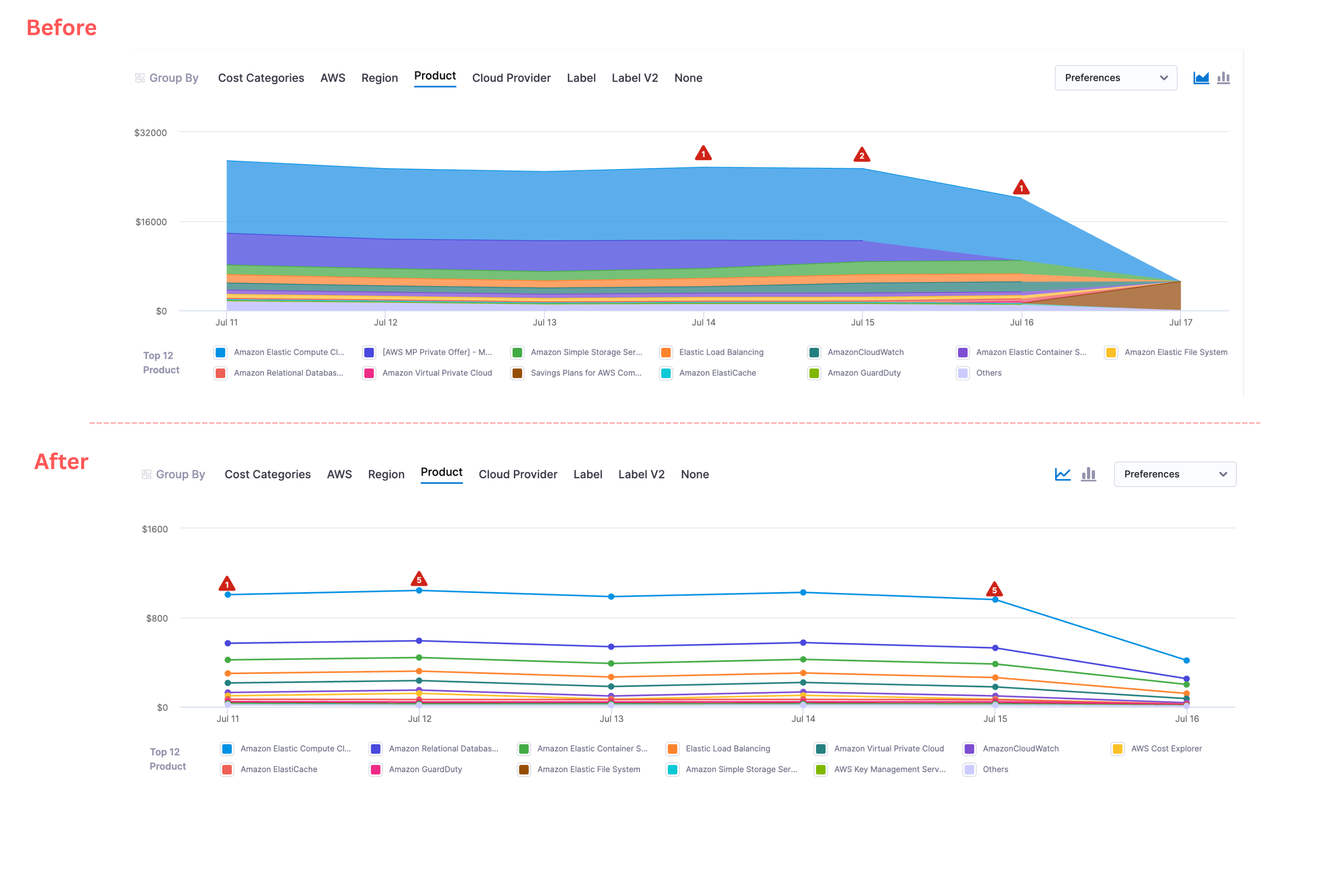 - On the Perspective page, the anomalies tooltip now no longer includes the 'Apply Filter' functionality. Anomalies will now honor the perspective data aggregation value. [CCM-26647]